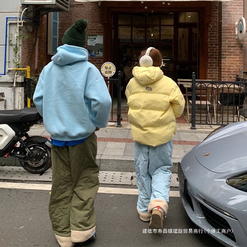 후리스】2024 가을 겨울 신상 아가일 체크 도톰 후리스 면바지 도톰 방수 바지 패셔너블